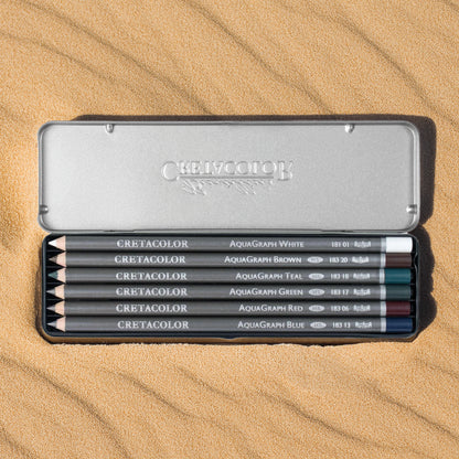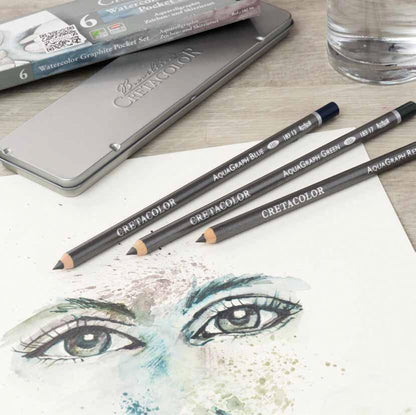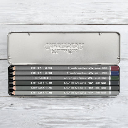Set of 6 Graphite & Colours – Contains one Aquagraph each in red, green and blue plus one each of the Cretacolor Graphite Aquarelle pencils in HB, 4B and 8B.