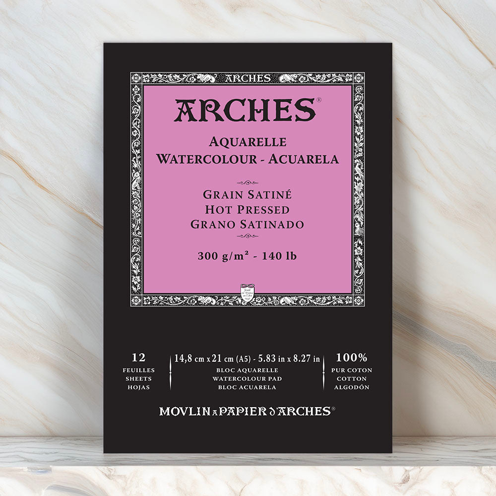 Arches 100% Cotton 300gsm Hot Press Watercolour Pads | Pad of 12