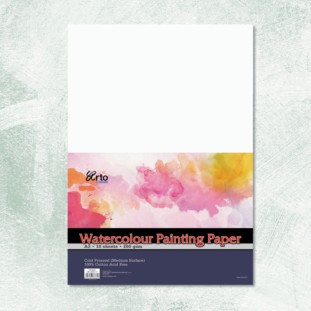 Arto 100% Cotton watercolour paper is an acid-free, 100% cotton, cold press, natural white, European-milled watercolour paper. This Cold Press paper is suitable for beginning and experienced artists alike. The 100% cotton content minimizes buckling and damage to the paper surface when using masking fluid/artists' tape and improves colour transition, lifting and layering. Acid free, non-aging and pH neutral.