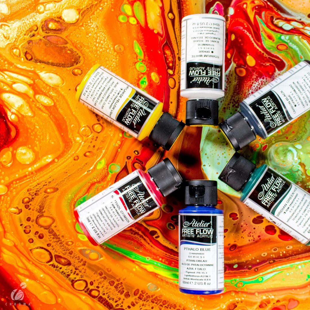 Made from the finest pigments and binders and utilising the latest advances in polymer technology this paint is one of the most fluid and vivid acrylics available. Use alone or mix with other acrylics to create more contrast and texture. Atelier Free Flow is ideal for creating ink, gouache or watercolour effects and can be used as an effective substitute for these products. It is lightfast and dries quickly to a waterproof, velvet matte finish with rich and vibrant colour. Very little (if any) dilution is required, ensuring the pigment strength is retained and makes painting light colours over dark to be far easier. The surface finish is smooth, even and neutral - perfect for works on paper and canvas.