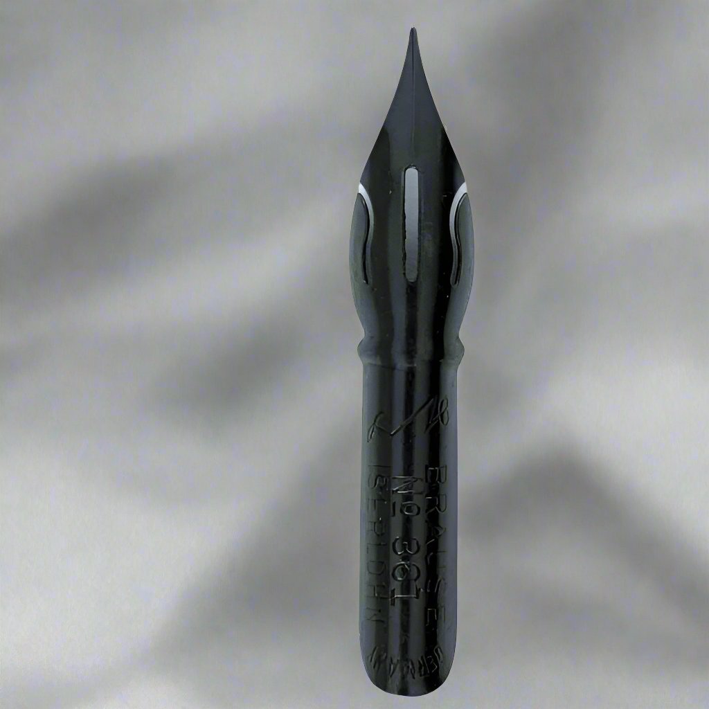 Short hand nib, very fine point, highly elastic, high ink capacity, fine reaction, blue-coloured. Thin line with perfect ink flow.