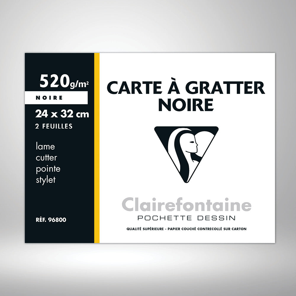 Fine quality Scraperboard heavily coated with China Clay, giving a smooth surface which is then over printed with black ink. Scraperboard offers an artistic medium that is clear and precise. Used by illustrators and professional artists, the super smooth surface allows for work in extremely fine detail and makes the most mundane subjects sparkle.