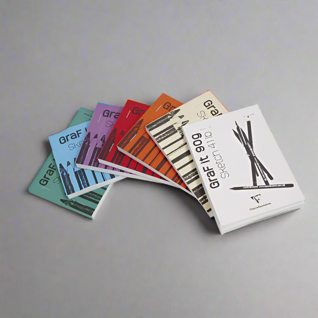 Clairefontaine Graf–It Sketchpads contain 80 sheets of 90gsm, French milled, acid-free and archival drawing paper. They are top bound and are ideal for sketches and notes. Available with blank pages or 5mm pale violet dot grid sheets.