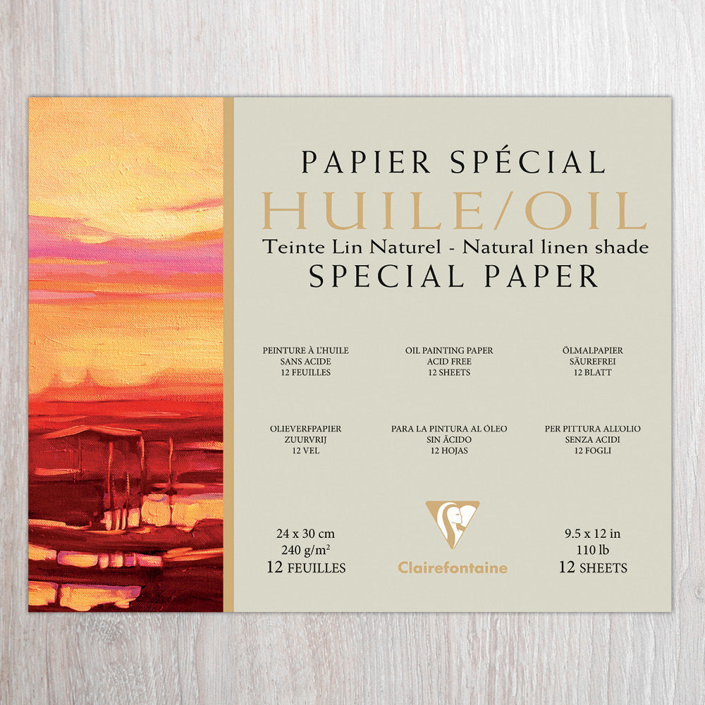 This surface of this paper has been specially treated to prevent oils and solvents soaking through. The linen-style grain of the paper imitates the appearance of canvas and allows colours to be re-worked while drying. Ready to use and recommended for study or outdoor painting, this paper is available in a white or warm shade of natural linen exclusive to Clairefontaine. 240gsm, acid free and pH neutral.