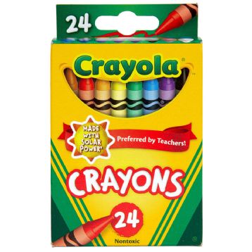 Colours included are: green, blue, red, yellow, black, white, orange, brown, violet (purple), blue violet, blue green, carnation pink, red orange, red violet, yellow green, yellow orange, gray, gree, yellow, dandelion, apricot, cerulean blue, indigo, scarlet, violet red.