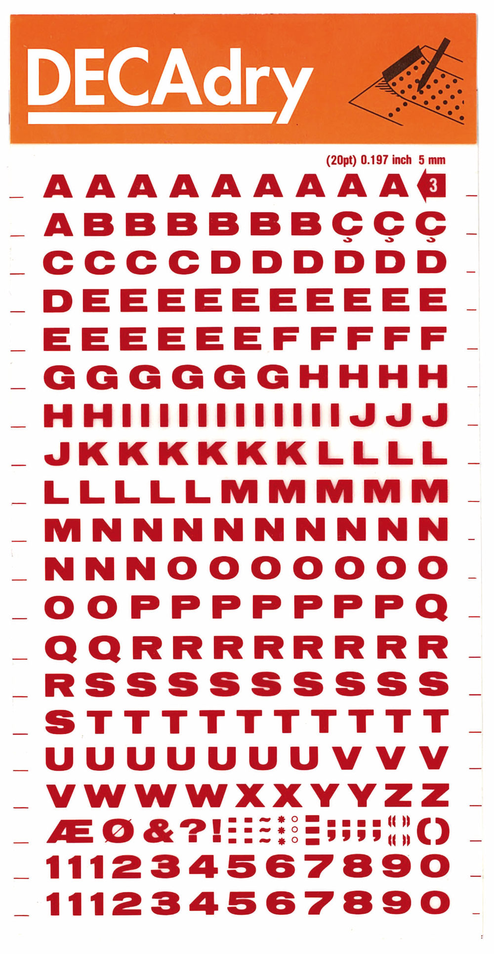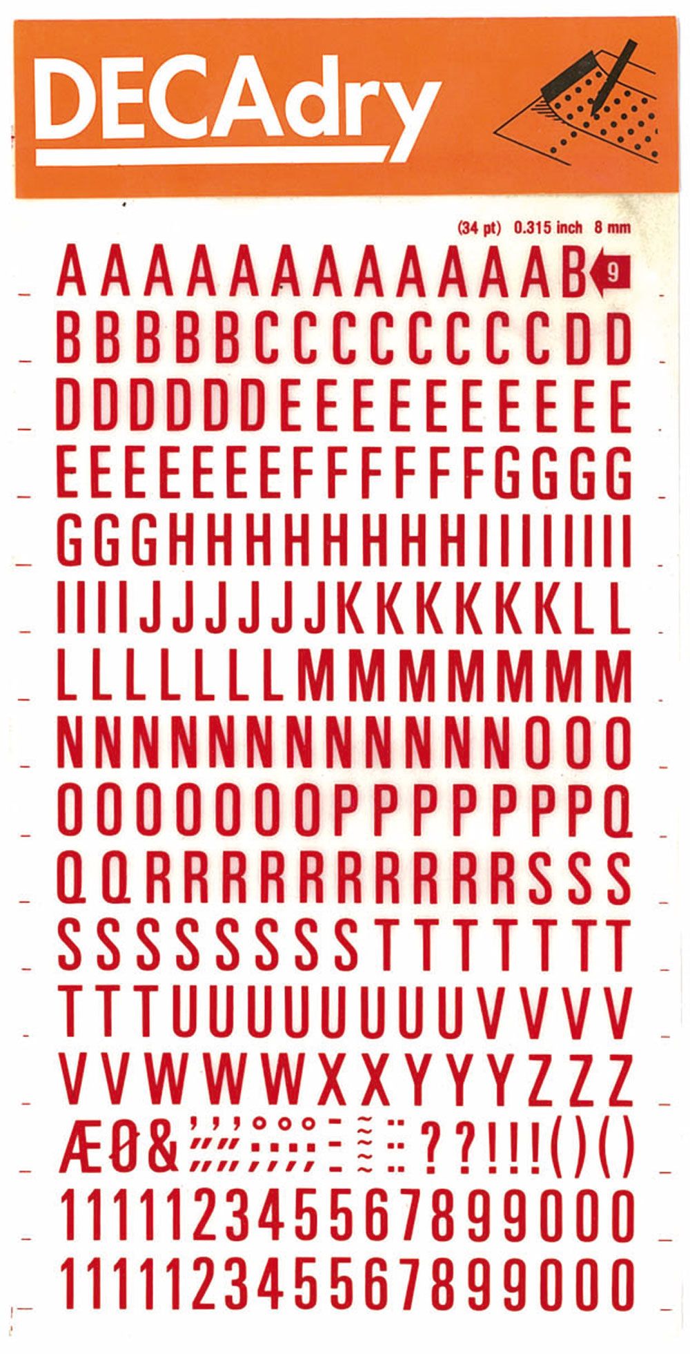 Decadry transfer lettering is the perfect answer for a wide range of uses and users such as students, teachers, draughts people and businesses etc.