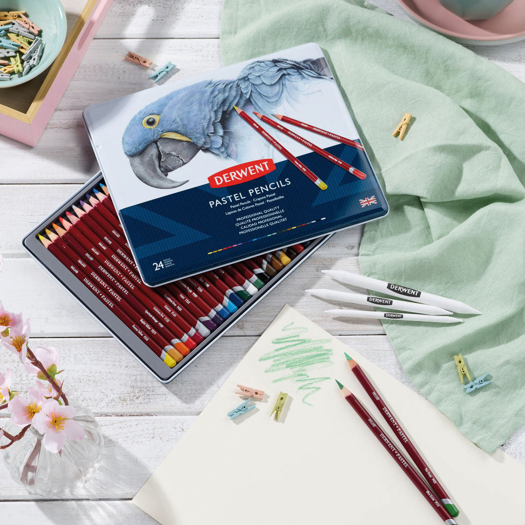 These pencils sharpen easily so you can enjoy the beauty of pastels with the precision of a pencil. The barrel coating on the pencils uses Derwent's environmentally friendly water-based paint technology.