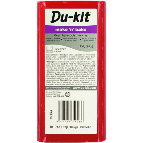 Superior to all brands of "oven bake" modelling compounds. It is easily fired in a domestic oven, has a long shelf life and is suitable educational for artistic, commercial, and industrial applications. It is non-toxic, and remains soft and pliable until fired. Once fired it can be drilled, sawn, sculpted, glued, painted or lacquered to a gloss finish. N.B.- Picture for illustrative purposes only.