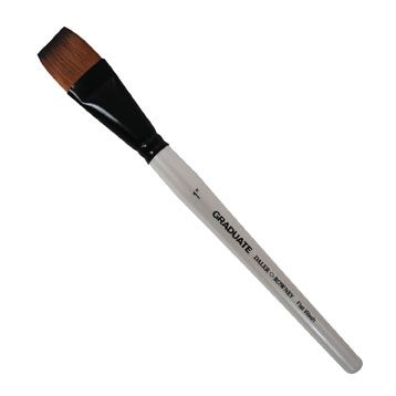 The new Graduate brush range has been developed to meet the needs of both students and hobbyists. Graduate brushes are available in a range of 54 brushes with 16 different head shapes in a range of sizes with either long or short handles. The range also features a variety of hair types to suit acrylic, oil and watercolour techniques and are all available at the same price! Graduate brushes have a unique rating system to indicate the suitability of the brush (or brush wallet) for use with oil, acrylic or watercolour. The number of stars assigned to each brush indicates the level of performance or suitability for use with that particular medium. All Graduate brushes are hand crafted with high quality materials. The Graduate Synthetic brushes are resilient, durable. Excellent snap and edge. Great for all types of paint.