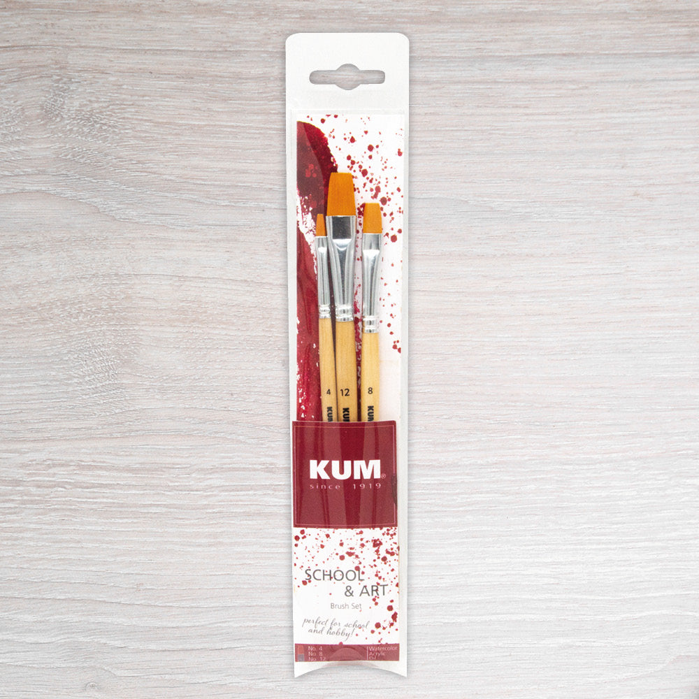KUM School & Art Set of 3 Flat Brushes