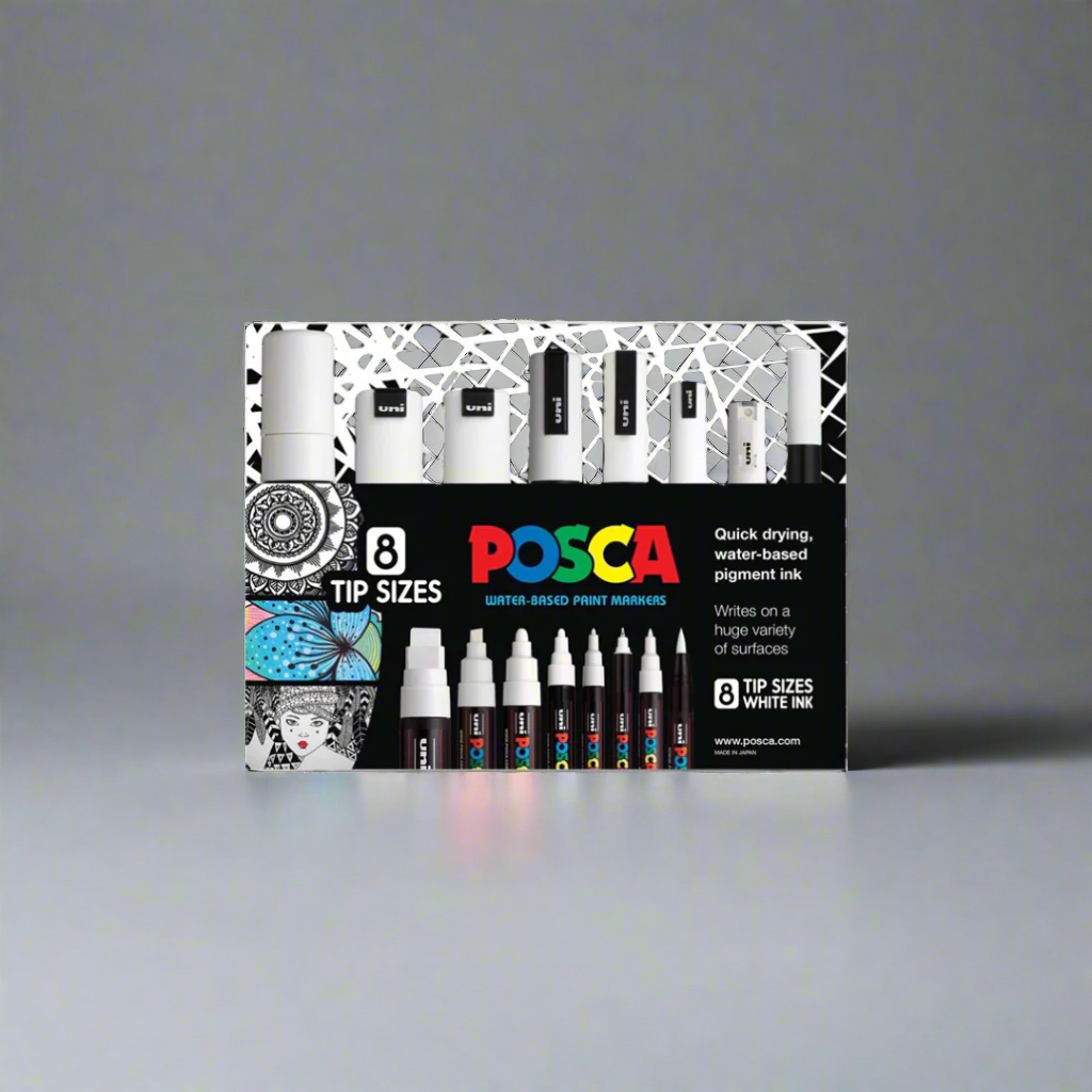 Experience the full versatility of the POSCA range with the White 8 Tip Set. Perfect for artists, crafters, and professionals alike, this kit includes all eight iconic POSCA tips—each in bold, opaque white pigment ink.