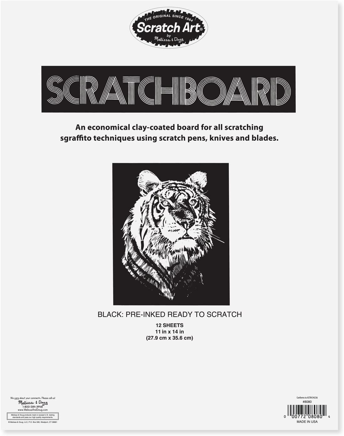 Black Scratchboard is a flexible 10pt to 12pt cardboard which has been coated with a unique, flexible, thin white clay film over which a special black ink coating has been applied.