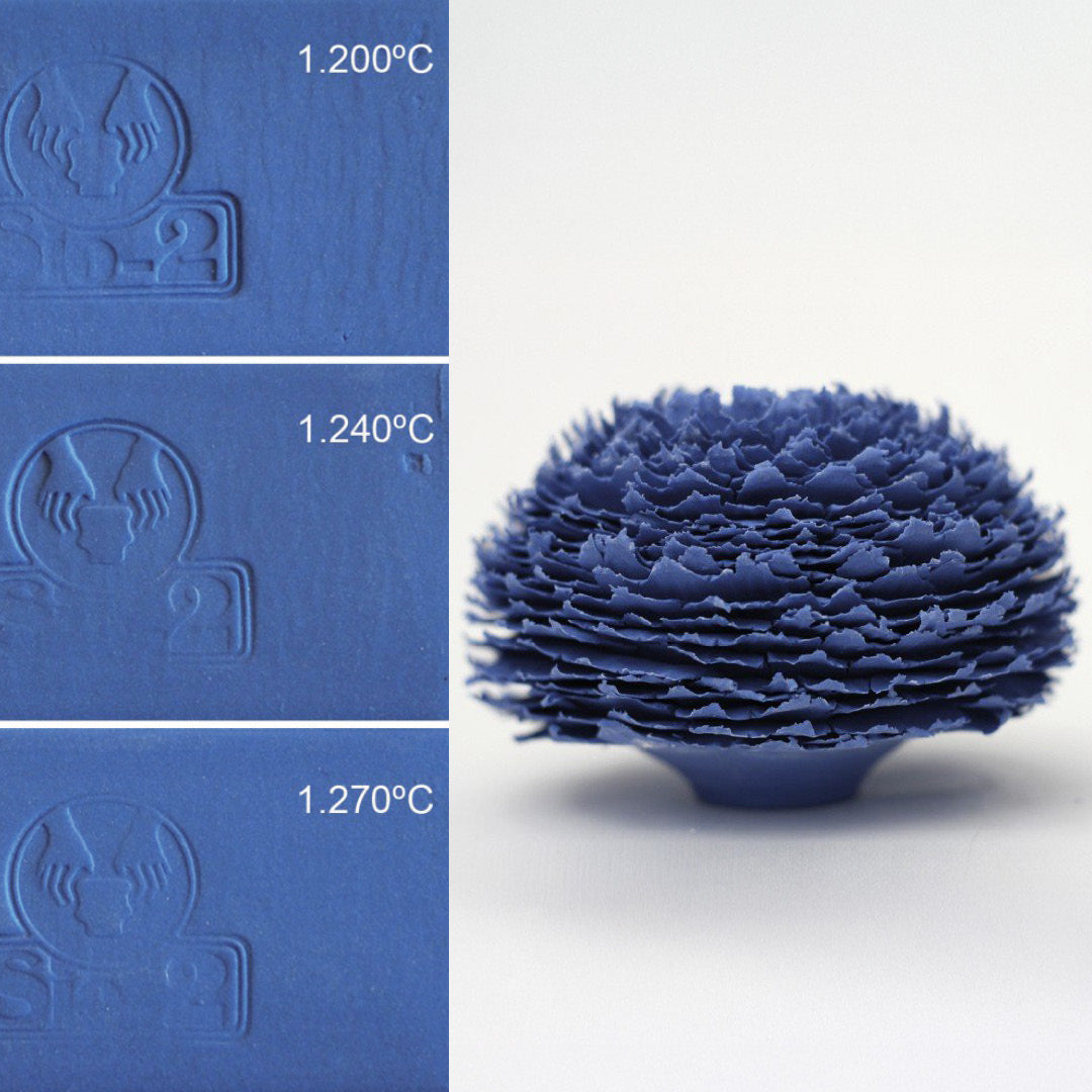 Upsala is a unique blue porcelain noted for its beautiful cobalt blue. It has high plasticity, which makes it ideal for wheel-throwing and modeling. Its formula is very stable and provides a secure firing range between Cone 6 and Cone 7 (oxidizing atmosphere). Suitable for tableware (food-safe), according to ISO 6486:1999. Available in extruded body (moist form). Supplied in a practical 5 kg cylindrical format with double packaging.