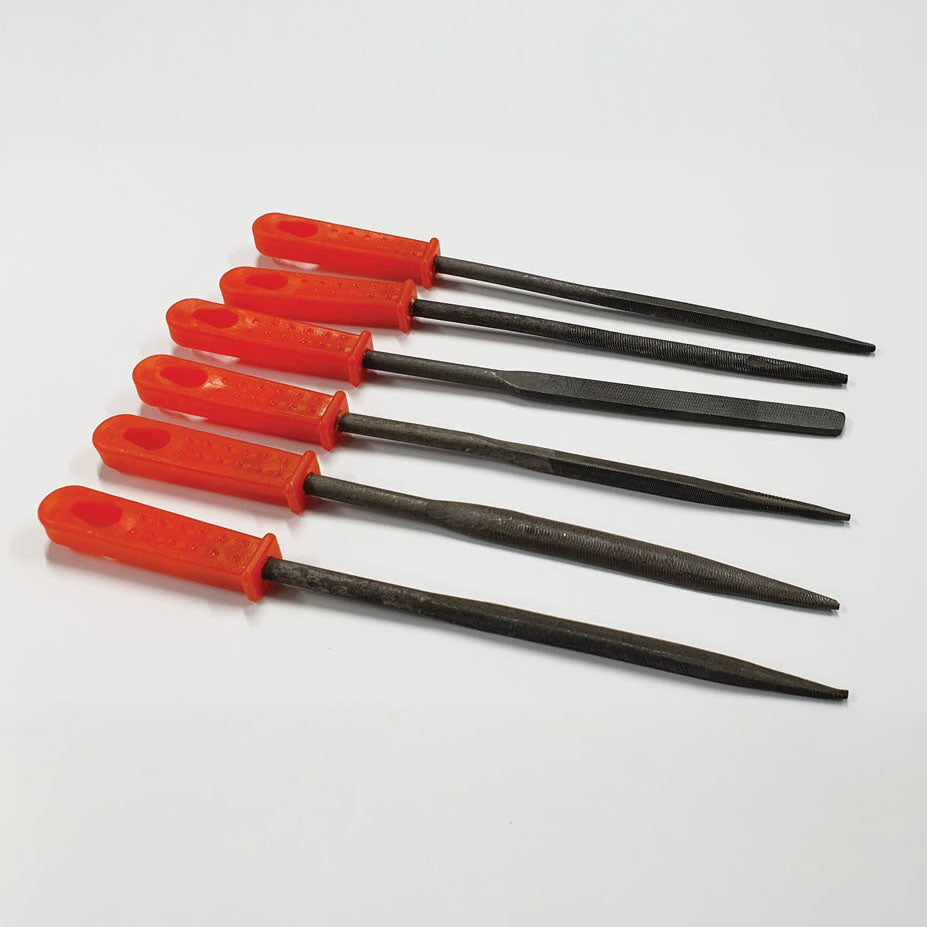 These plastic-handled files have very small teeth which make them suitable for precision work or for preparing the stone surface before using sandpaper and for polishing. They are suitable for shaping stones that measure up to hardness 2 on the Mohs hardness scale including Alabaster, Serpentine and especially suitable for greasy type stone such as Soapstone.